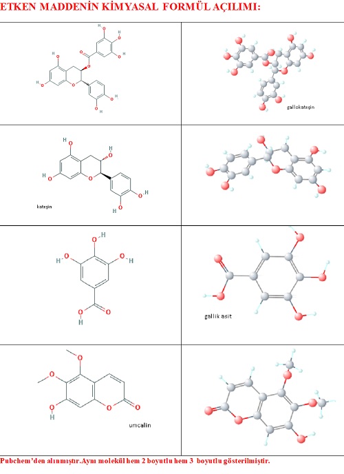 ETKEN MADDESİ:Kurutulmuş kökleri kullanılır.Son yıllarda Almanyada soğuk algınlıklarında kullanımda tercih edilmeye başlamıştır.Kumarinler,proantosiyanidin tipi tanenler ve fenolik bileşiklerdir.Tanenlerden kateşin,gallokateşin ve gallik asittir. Kumarinler ise umckalin’dir.