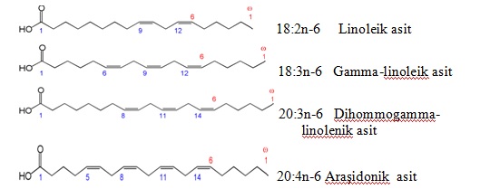 Uzun zincirli çoklu doymamış yağ asitleri (Şekil 2), LC-PUFA lar, 18-20 karbonlu yağ asitleridir. Bunlar iki ana başlık altında incelenmiştir.
