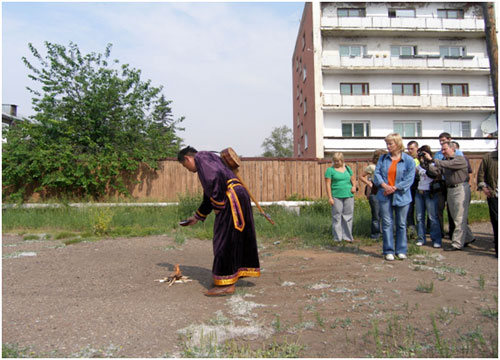 ULAN UDE’ye dönüp Etnografya müzesine giriyoruz. Adam başı 100 ruble. Açık hava müzesi. İnsan içinde huzur buluyor. Doyasıya geziyoruz ve adım, adım tadını çıkartıyoruz. En güzeli de, kulaklarımızı okşayan müzik sesine doğru yol alıyoruz. Allah’ım ne görelim; tam aradığımız Şaman geleneklerini yaşatan bir topluluk. Tanışıyoruz, bizleri bağrına basıyorlar. Bize, MUSTAFA KEMAL ATATÜRK demeleri. Orada TÜRK olduğum için ve ATATÜRK gibi bir öndere sahip olduğumuz için gurur duyuyoruz. Güzel resimler çekiyoruz. Bizi bağırlarından çıkarmıyorlar. Zor da olsa ayrılıyoruz. Orda onlara has bir mantı ikram ediyorlar ve yiyoruz. Güzel bir geziden sonra şehre dönüyoruz.
