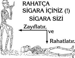 * Sigarayı Türkiye’de yetişkin nüfusun neredeyse yarısı kullanıyor ve bunun için bu yetişkin nüfusun yarısı erken ölecek. Hadi ölmediniz diyelim, kolsuz, bacaksız, ciğersiz sürünmek daha mı iyi?