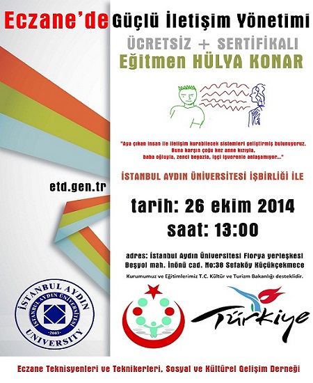 Eczane Teknisyenleri ve Teknikerleri, Sosyal ve Kültürel Gelişim Derneği ve İstanbul Aydın Üniversitesi işbirliği ile gerçekleşecek eğitim programımız aşağıda bilgilerinize sunulur.