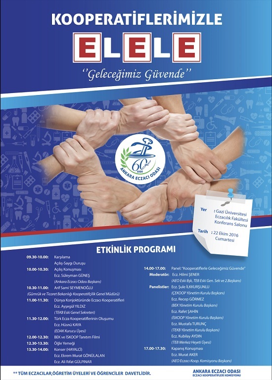 Kooperatiflerimizle Elele “Geleceğimiz Güvende” etkinliğimiz 22 Ekim 2016 Cumartesi günü Gazi Üniversitesi Eczacılık Fakültesi Konferans Salonu’nda gerçekleştirilecektir. Tüm meslektaşlarımız ve öğrenciler davetlidir.
