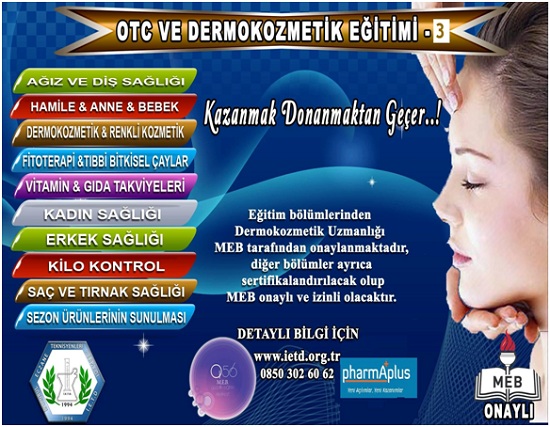 YOĞUN TALEP DOĞRULTUSUNDA İSTANBUL ECZANE TEKNİSYENLERİ DERNEĞİ, EĞİTİMİ DEĞİŞTİRİP GELİŞTİREREK YENİ BİR EĞİTİM PROGRAMI HAZIRLAMA GEREĞİ DUYMUŞTUR. A56 ESTETİSYENLİK KURSU VE PHARMAPLUS ORTAKLIĞINDA DÜZENLEDİĞİMİZ EĞİTİME ON KAYITLAR ALINMAYA BAŞLANMIŞTIR. DAHA ÖNCEKİ EĞİTİMLERİMİZ DE 220 ECZANE TEKNİSYENİ VE 20 ECZACIMIZIN KATILDIĞI VE GERİ BİLDİRİMİNİ YÜKSEK DERECEDE OLUMLU ALDIĞIMIZ OTC VE DERMOKOZMETİK EĞİTİMİ 3. KAYITLARININ AÇILMASINA KARAR VERİLMİŞTİR...