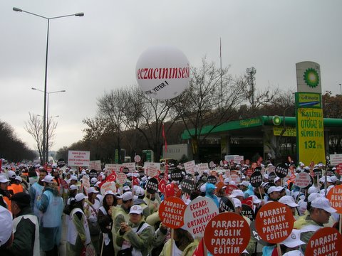 Kolej Meydanı’nda yapılan mitinge yaklaşık 15 bin eczacı katıldı. Bütün illerden eczacıların mitingine, Türk Tabipleri Birliği, Sağlık ve Sosyal Hizmet Emekçileri Sendikası, Türk Diş Hekimleri Birliği, Türk Hemşireler Derneği ve Devrimci Sağlık-İş Sendikası da destek verdi. CHP milletvekilleri Sacit Yıldız, Tekin Bingöl, Kemal Demirel, Çetin Soysal, Atilla Kart ile DTP milletvekili Osman Özçelik ve DSP Eskişehir Milletvekili Tayfun İçli de destek verenler arasında yerini aldı.