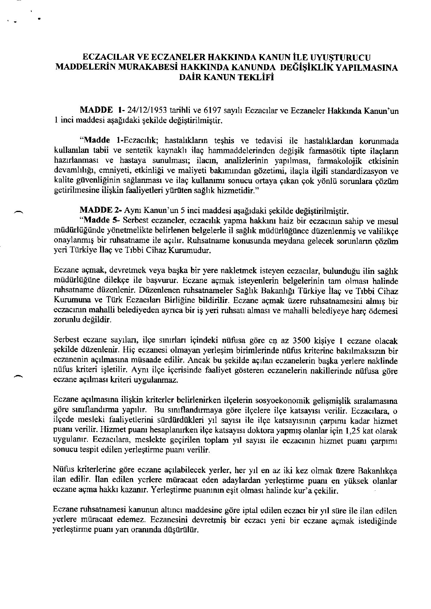 TBMM Başkanlığı’na sunulan teklifin ORJİNAL metnini yayınlıyoruz. Teklif yarın(26.04.2012) TBMM Sağlık Komisyonunda görüşülecek.