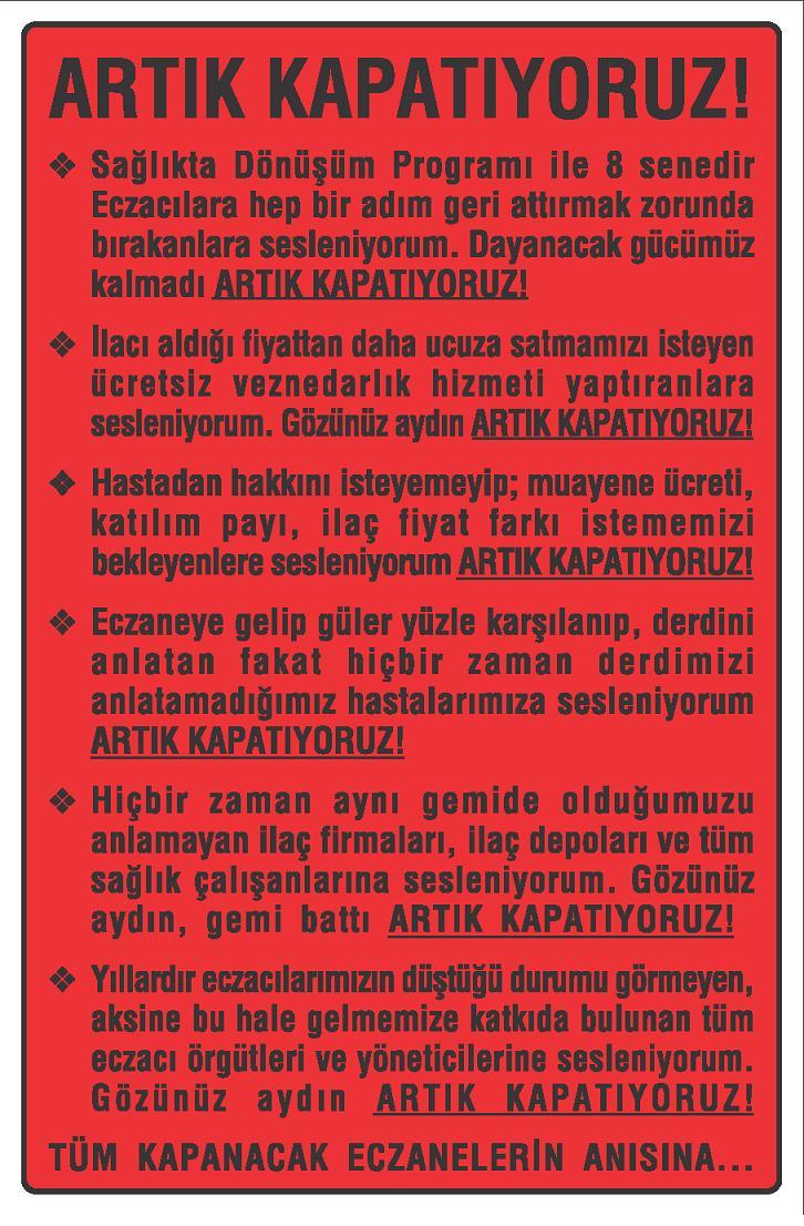 Haberler / En Son Eklenen ’KKİ Uygulanmıyor’ ECZACININ SESİ/HABER 09-01-2026 Bedeli Ödenecek İlaçlar ECZACININ SESİ/HABER 07-01-2026 Yapay Zekâ ile Dertleşmek ECZACININ SESİ/HABER 07-01-2026 Eczacılıktan Notlar ECZACININ SESİ/HABER 07-01-2026 Eczacılar Görmezden Geliniyor ECZACININ SESİ/HABER 07-01-2026 Haberler / Tüm Yazılar