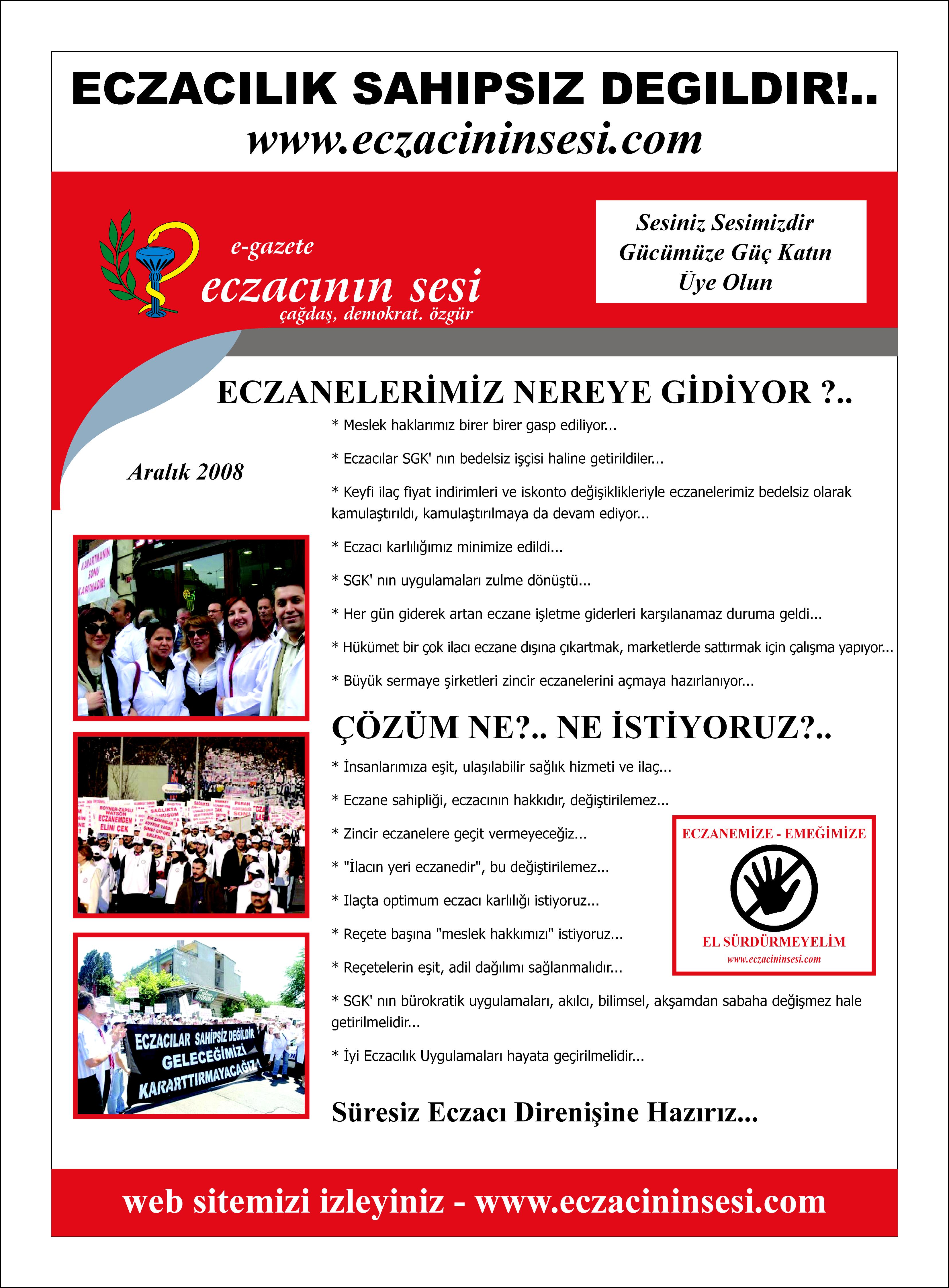 Eczacının Sesi, artık basılı yayın olarak da çıkmaya başladı. Gazetemizin ilk saysı basıldı. Yakın da İstanbul'a dağıtılmaya başlanacak.