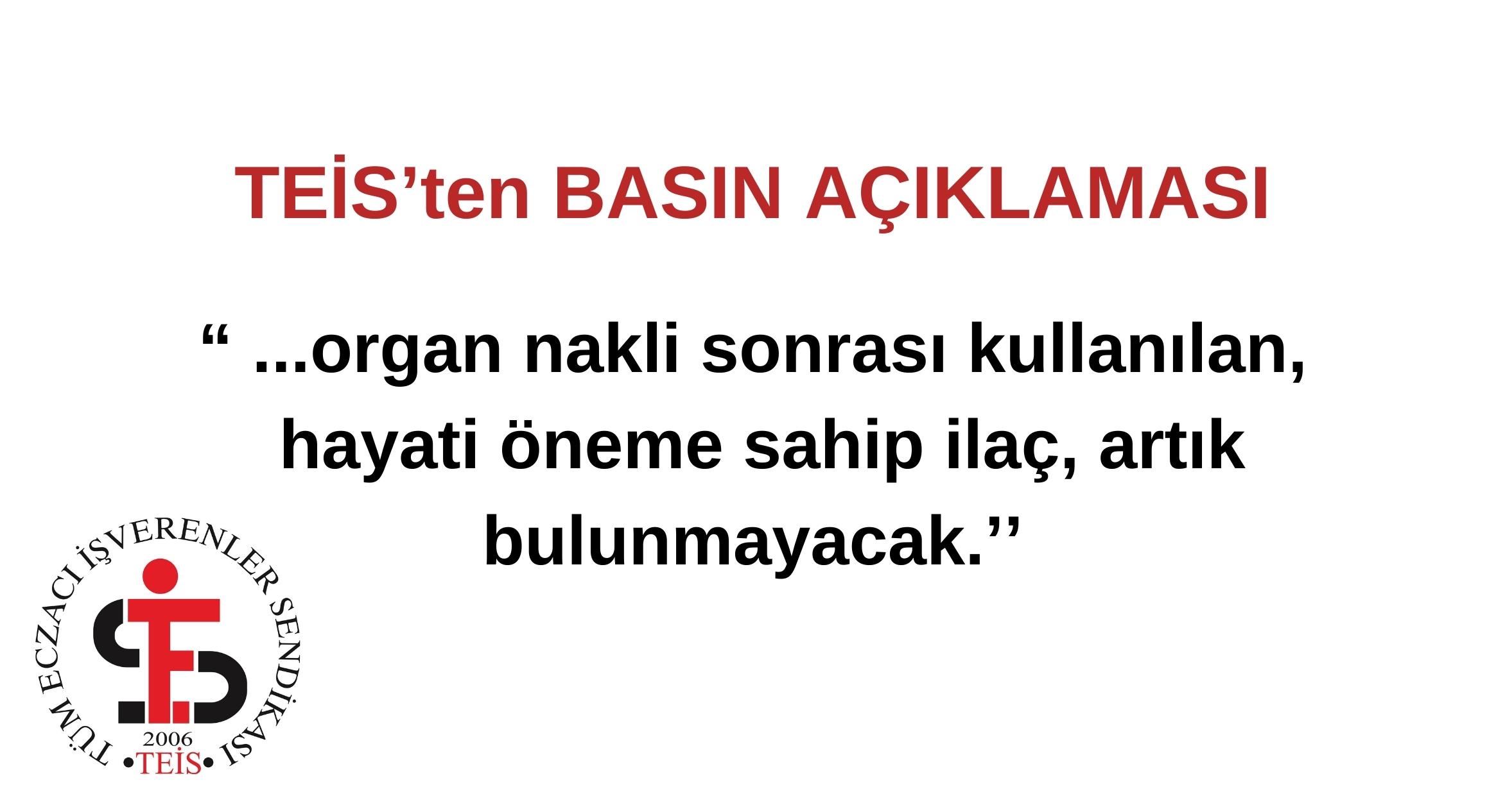 “Sonuç olarak çok önemli bir organ nakli sonrası kullanılan, hayati öneme sahip ilaç, piyasadan sessizce kaybolan diğer ilaçlar gibi artık bulunmayacak.
