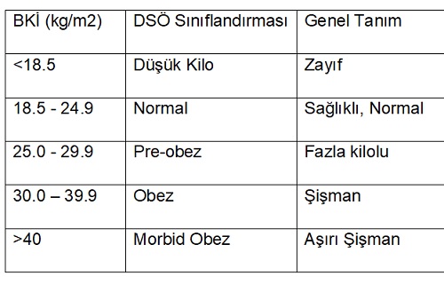 Dünya Sağlık Örgütünün BKİ (Beden Kitle Indeksi) Sınıflandırması