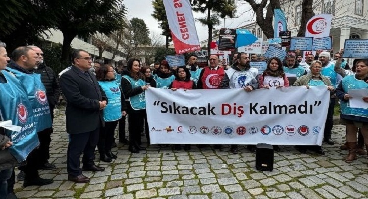 Kamuda ağız ve diş sağlığı hizmetlerinde çalışan emekçilerin başlıca sorunlarını ve çözüm önerilerini sıralayan Gürkan, “Sağlıkta dönüşümle geldiğimiz nokta da tüm sağlık emekçileri gibi ağız ve diş sağlığı hizmetlerinde çalışan emekçilerin de özlük, ekonomik ve demokratik hakları engellenmekte, sorunları görülmemekte, talepleri karşılanmadığından üretimden gelen güçlerini kullanmaktan başka çareleri kalmamıştır. Bu inançla; halka nitelikli ağız ve diş sağlığı hizmeti sunma mücadelesi veren ağız ve diş sağlığı emekçilerinin ekonomik, özlük, demokratik haklarını korumak, iyileştirmek için başlattığımız fiili ve meşru eylemlerimiz artarak devam edecektir” diye konuştu.