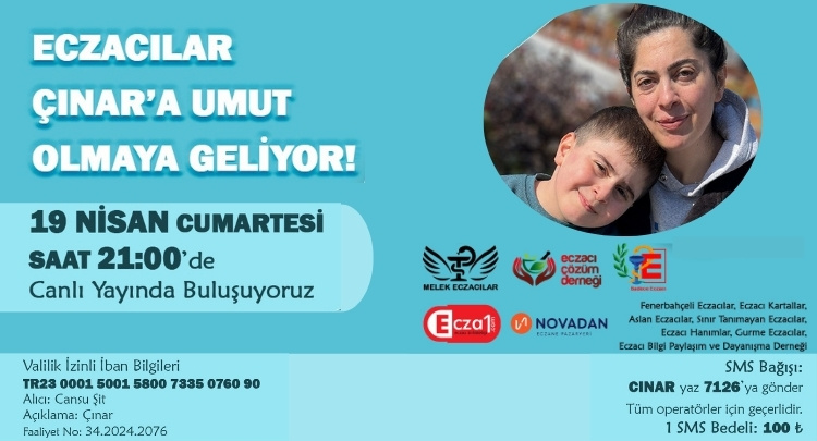 Eczacılar Çınar'a umut olmak için YARIN 19 Nisan Cumartesi saat 21:00 de canlı yayında bir araya geliyor.