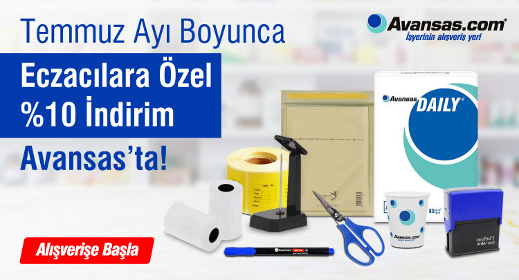 Eczacılara özel, tüm iş yeri ihtiyaçlarınız için %10 indirim fırsatı Avansas’ta! 31 Temmuz 2024 tarihine kadar geçerli ECZS10 kodlu kuponunuzu keyifle kullanmanız dileğiyle.”