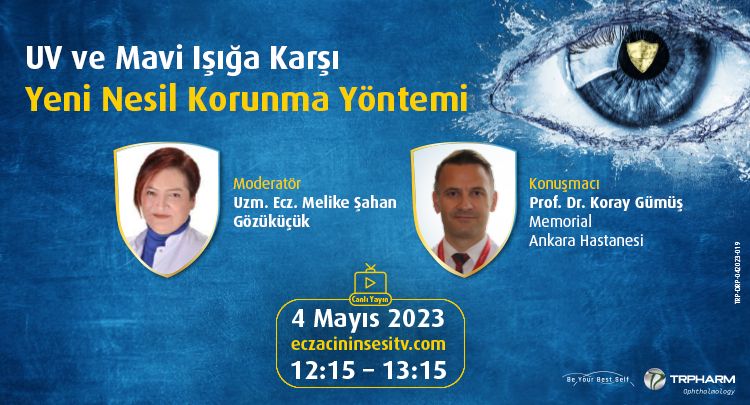 Değerli Eczacılarımız, 4 Mayıs 2023 Perşembe eczacininsesitv.com adresinde saat 12.15'de Uzm. Ecz. Melike Şahan Gözüküçük moderatörlüğünde Ankara Memorial Hastanesi'nden Prof.Dr. Koray Gümüş canlı yayın konuğumuz olacaktır. Sayın Gümüş, "UV & Mavi Işığın Göz Sağlığımıza Etkileri ve Yeni Nesil Nemlendirici Korunma Yöntemi" hakkında bizlere çok değerli tecrübelerini aktaracaktır. Canlı yayınımız sırasında sorulacak olan 3 adet bilimsel soruya en hızlı ve doğru yanıtı verecek olan eczacılarımız 25-28 Ekim 2023 tarihlerinde Nirvana Dolce Vita, Antalya'da gerçekleştirilecek olan Bilimin E-hali kongresine "KAYIT, KONAKLAMA & ULAŞIM" hakkı kazanacaktır.
