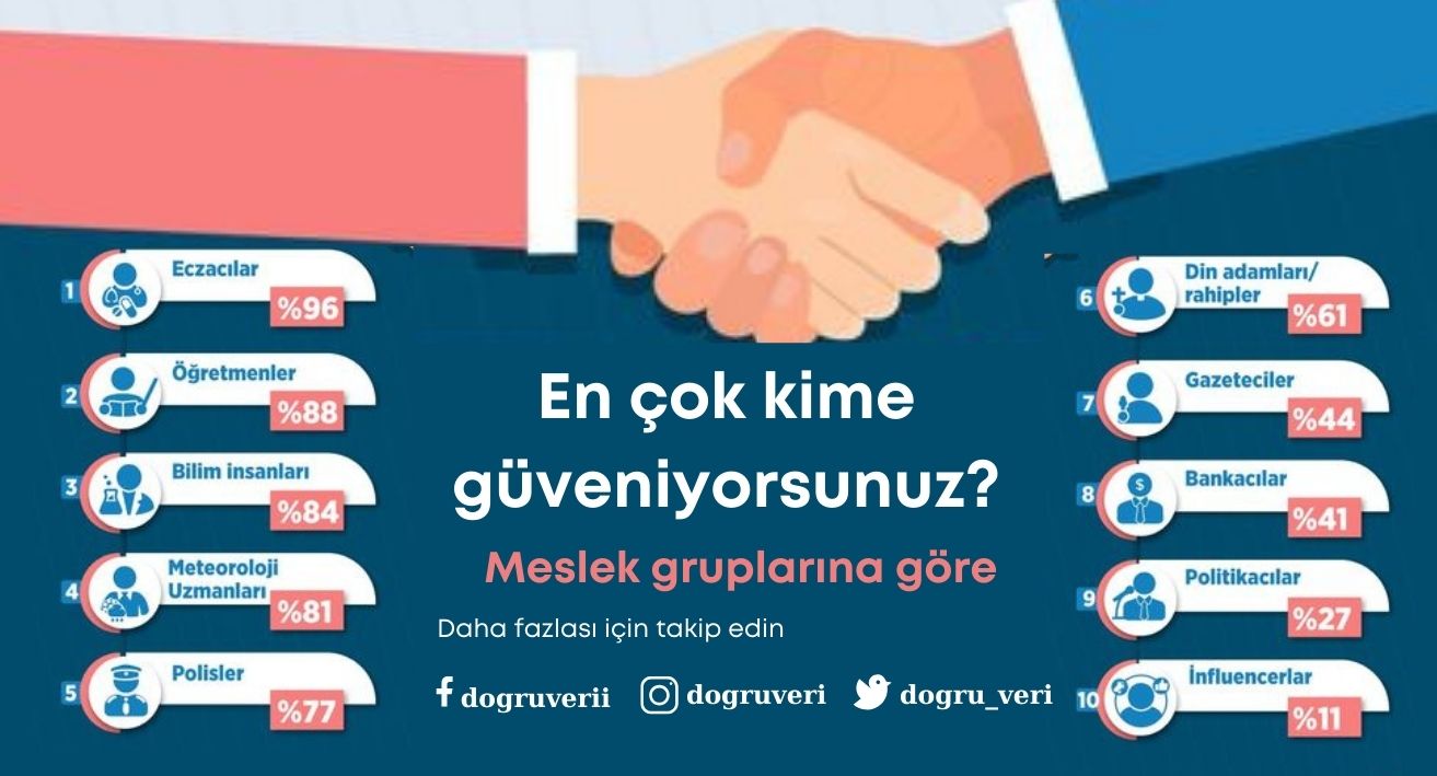 Doğrulanmış veri ve istatistik bilgileri ile, sosyal araştırma sonuçları yayımlayan Doğru Veri kuruluşu, güvenilir meslekler sırlamasında % 96 güvenilirlikle, BİRİNCİ SIRADA eczacıların olduğunu duyurdu.