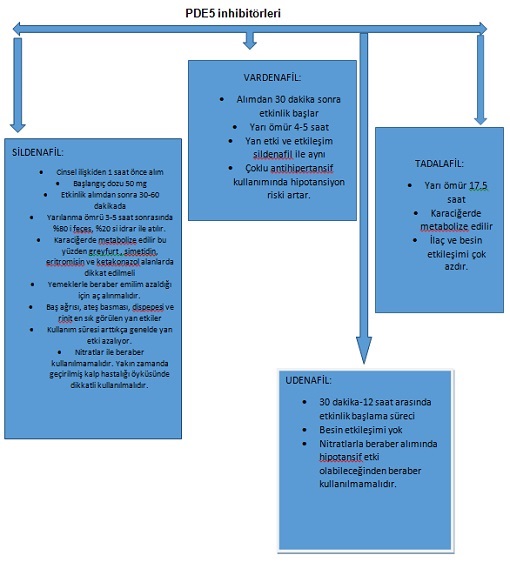 En çok reçetelenen ve en sık kullanılan ilaçlar PDE5 inhibitörleridir. Bu kısımda sadece bundan bahsedilecektir.