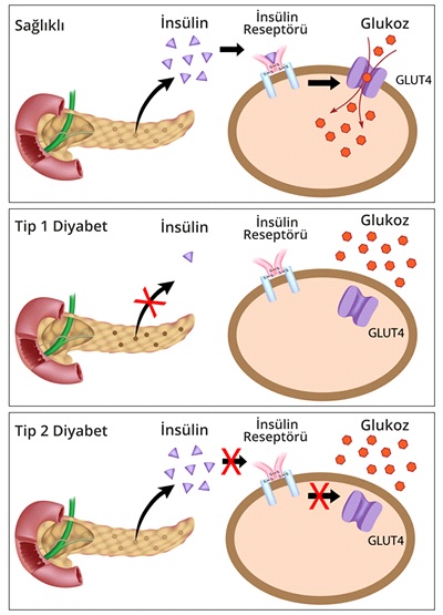 Vücutta kan şekerinin düzenlenmesinde rol oynayan hormonların en önemlisi, pankreasın beta hücrelerinden salgılanan insülin hormonudur. Pankreasın yeterli miktarda insülin hormonu üretememesi ya da üretilen hormonun etkili bir şekilde kullanılamaması durumunda enerjiye dönüşmesi gereken glukoz, kanda birikerek kan şekerinin yükselmesine neden olur.