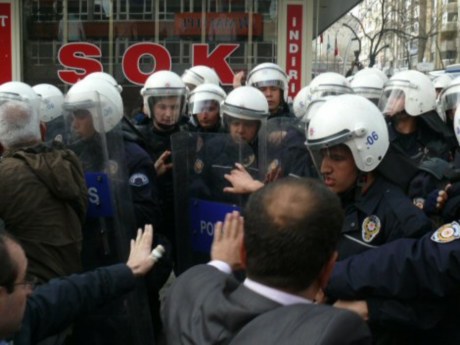 Türk-İş binasına çıkan yollara barikat kuran polis ekipleri, işçilerin yaklaşmasına dahi izin vermeyerek, dağılmaları yönünde uyarıda bulundu. Polis ablukasını andıran görüntüler üzerine TEKEL işçileri, bu durumu slogan atarak protesto ettiler.