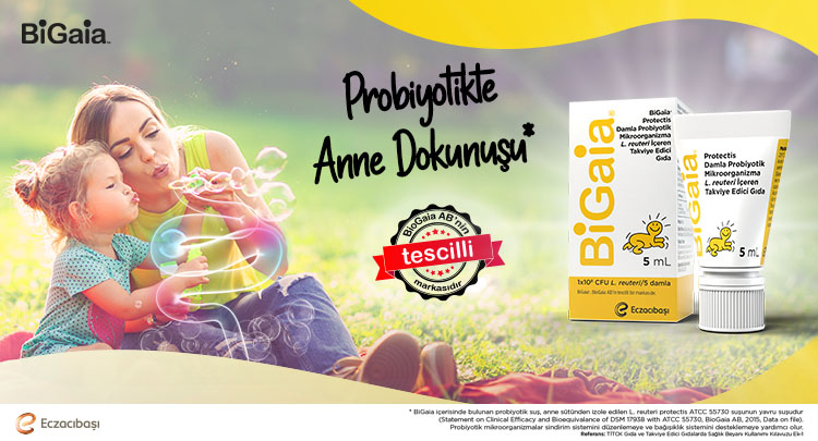 BiGaia D Vitaminli Damla ve BiGaia Saşe ürünleriyle tanıdığımız BiGaia ailesinin yeni üyesi BiGaia Damla şimdi Türkiye'de! İçerisinde anne sütü kaynaklı probiyotik mikroorganizma Limosilactobasillus reuteri Protectis (DSM 17938) suşu bulunuyor1. BiGaia Damla, kolay damlama teknolojisi ile pratik kullanım avantajı sunuyor. Peki siz probiyotikte anne dokunuşuyla tanışmaya hazır mısınız?