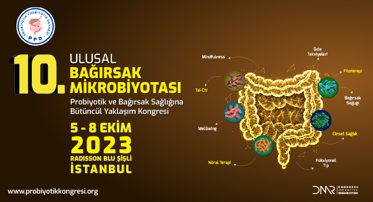 10. Ulusal Bağırsak Mikrobiyotası Probiyotik ve Bağırsak Sağlığına Bütüncül Yaklaşım Kongresi 5- 8 Ekim 2023 tarihleri arasında Radisson Blu Şişli İstanbul Hotel'de düzenlenecektir.