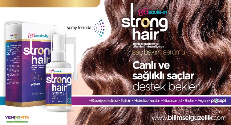Beaute-in Strong Hair içeriğindeki Procapil, saç büyümesini destekler. Vitamin açısından zengindir. Saç dökülmesini önlemeye yardımcıdır. Saç köklerinde folikül yaşlanmasını azaltmaya destek olur. Hidrolize Keratin, saç liflerinin etkili bir şekilde onarılmasına, saçın nem içeriğinin ve esnekliğinin artmasına yardımcı olur. Saç liflerindeki parlaklığı ve yumuşaklığı arttırır. Biberiye, saç köklerini besler ve yeniler. Saç büyümesini destekler. Kafein, saç kökü büyümesini uyarır ve saçın uzamasını destekler. Niasinamid oksidatif strese bağlı hücre yaşlanmasına ve buna bağlı saç dökülmelerini önlemeye yardımcıdır. Biotin zayıf saçları güçlendirmeye ve saç kalitesini iyileştirmeye destek olur. Argan saçı besler, saçı nemlendirir ve saçın elastikiyetini arttırır.