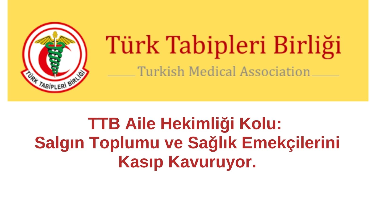 TTB Aile Hekimliği Kolu olarak; süreci takip ettiğimizi, uyarı ve taleplerimizi eksiltmeyeceğimizi, halkın sağlık hakkı ile sağlık emekçilerinin yaşam ve güvenli çalışma ortamı başta olmak üzere hakları için mücadele etmeye kararlı olduğumuzu bildiriyoruz.