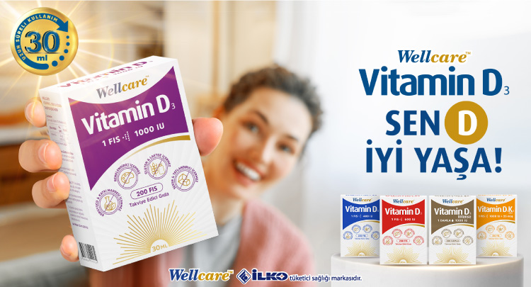 Wellcare Vitamin D₃ 400, 600 ve 1000 IU formları şimdi 30 ml 200 fıs/gün uzun süre kullanım ile yeni şişelerinde ve yeni ambalajlarında satışa sunuldu.
