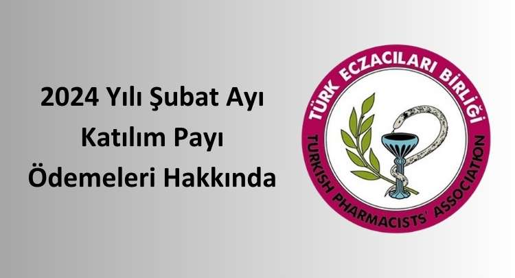 2024 Yılı Şubat ayı Eczane Kan Ürünü ile Eczane, Optik, Tıbbi Malzeme Tedarikçilerine ait katılım payı tutarlarının 29.03.2024 tarihinde bankaya gönderileceği ve aynı gün meslektaşlarımıza ödeme yapılacağı iletilmiştir.