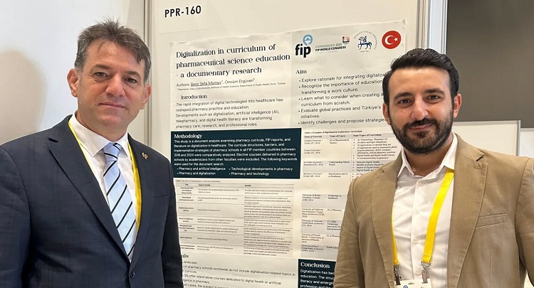 FIP Kongresi’nde Türkiye’den dört önemli poster sunuldu. Ankara Eczacı Odası Kamu Eczacıları Komisyonu Başkanı Dr. Ecz. İrem KARAÖMERLİOĞLU; hastane eczacılığındaki temel sorunları dünya uygulamalarıyla karşılaştırarak hangi alanlarda iyileştirmeler yapılması gerektiğini anlattı. Doç. Dr. Aysu SELÇUK; eczacılık öğrencilerinin kanıta dayalı tıp kaynaklarına dair bilgi, tutum ve davranışlarını değerlendiren değerli bir çalışma sundu. Ecz. Berfin AĞIR; D3 vitaminin daha etkin ve verimli kullanılması için yenilikçi bir yöntem paylaştı. Ecz. Beşir Sefa MUMAY; eczacılık bilimleri müfredatında dijitalleşme hakkındaki çalışmalarını aktardı. Türkiye’den katılan bu dört posterin uluslararası bir kongrede yer bulması gurur verici. Bizi böylesine saygın bir kongrede bilimsel çalışmalarıyla temsil eden meslektaşlarıma canı gönülden teşekkür ediyorum.”