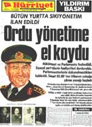 Ordu yönetime el koydu. Parlamento feshedildi, siyasi faaliyetler durduruldu, tüm yurtta sıkıyönetim ve sokağa çıkma yasağı ilan edildi.12 Eylül askeri darbesi sonrasında 7000 kişinin idamı istendi. Askeri Yargıtay 124 idam cezasını onayladı. 50 kişi idam edildi. Askeri yönetimde, gözaltında ya da hapishanelerde, "doğal olmayan ölüm" sayısı 229 oldu. İnsan Hakları Derneği'nin kayıtlarına göre 12 Eylül döneminde: 650 bin kişi gözaltına alındı. 230 bin kişi yargılandı. 1 milyon 683 kişi fişlendi. 141,142 ve 163. maddelerden 71 bin kişi, yasadışı örgüt üyesi olma iddiasıyla da 98.404 kişi yargılandı.