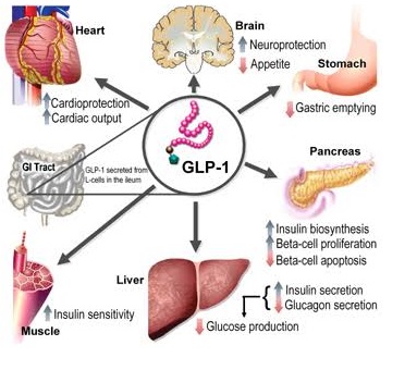 Bu grup ilaçlar, GLP-1 reseptörlerini aktive ederek pankreas b-hücrelerinin glukoza olan duyarlılığını artırır, pankreasın a-hücrelerinden glukagon salınımını azaltıp, gastrik boşalmayı geciktirir ve doyma hissini artırır. Bu grup ilaçların enjektabl olmalarına rağmen yaygın kullanım alanı bulmalarının sebebi kan basıncı üzerinde düşürücü etki göstermeleridir. Hipertansiyon hastalarında sistolik kan basıncı üzerinde 1.5 mmHg düşüş yaptığı bilinmektedir. Fark yaratan bir diğer özelliği de mide boşalma süresini uzatmaları, bireyde oluşturdukları tokluk hissi dolayısı ile kilo kaybını desteklemeleridir. (ortalama 2-4 kg)