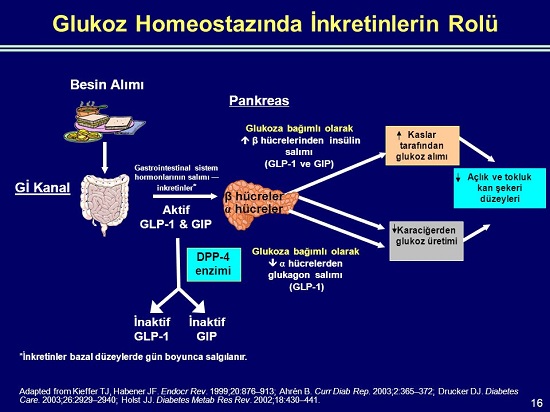 Hiperglisemiye neden olan faktörlerden biri de bilindiği üzere inkretinin etkisinde görülen azalmadır. İnkretin ince bağırsakta bulunan endokrin hücreler tarafından üretilen ve sistemik düzeyde etkili olan peptidlerdir. Gıda alımından sonra pankreası uyarır ve insulin salınımını artırırlar. Vücutta 2 major İnkretin hormonu bulunur. Bunlar glucagon benzeri peptid (GLP-1) ve glukoza bağımlı insülinotropik peptittir. (GIP) Gıda alımına yanıt olarak salınırlar.