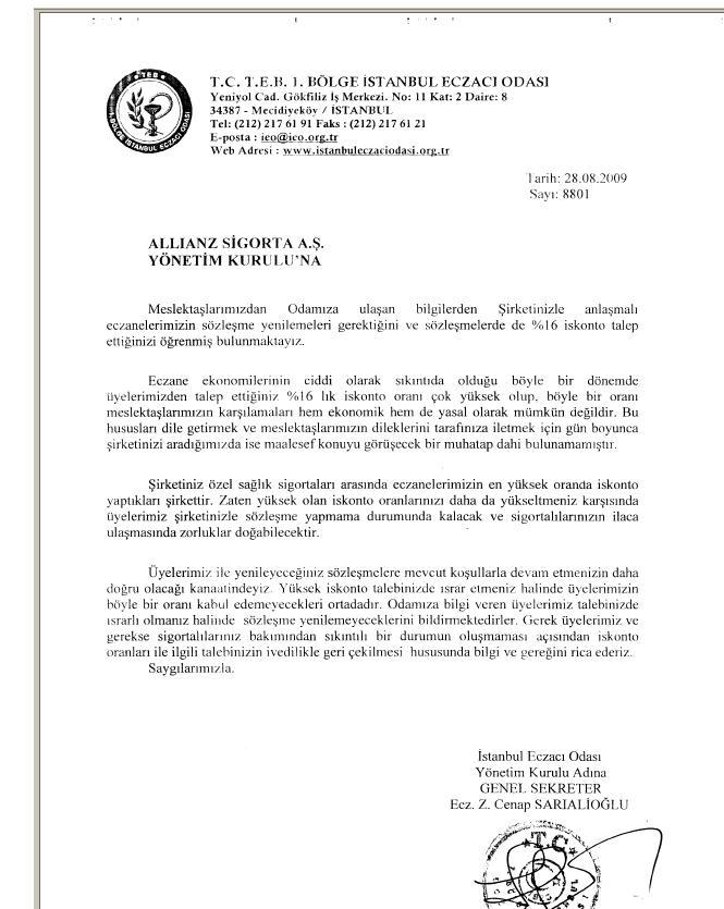 Muhatap bulamayan, ne istediği belli olmayan, "biraz daha aşağı çekin" diyecek kadar pazarlığa açık bir oda yönetimi. Nereden baksan İstanbul Eczacı Odası' na yakışmayan bir yazı...