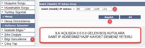 Cep telefonu üzerinden ve evinizden Medulaya girmek istiyorsanız SABİT IP olmalıdır.
