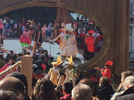 Sabah uyandığımızda kahvaltıdan sonra, güneşi de görünce Gondol sefasına karar verdik. Gondol her tarafta mevcut, biz Riolta’dan binmek istedik ve maskelerimizi de unutmadık, kanallardan geçtik, hayal alemine daldık. İnsanlar ailecek karnaval kıyafetleri maskeleri, çalgıları her yerdeydi. Spritelerimizi alıp oturduk ve insanları seyrettik, saat 15.00 da San Marco Meydanı’ndaki yarışmayı, kostümleri seyretmeye gittik. Çok eğlenceli görüntüler, maskeler vardı ve insanlar çok mutluydu. Gece yemekten sonra odamızdaydık.